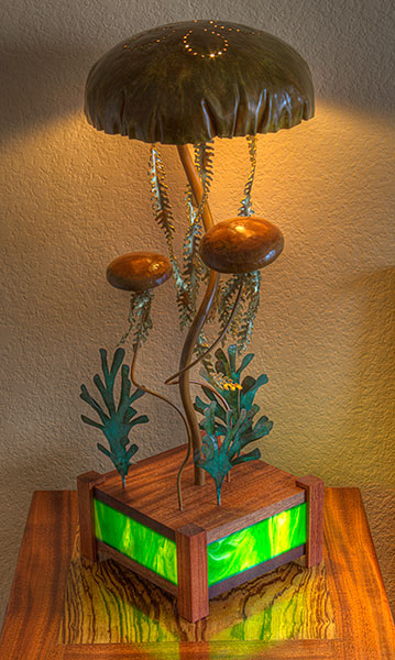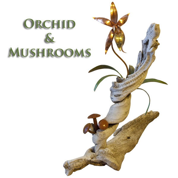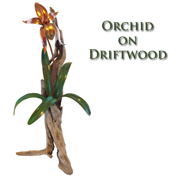 Each original piece is hand made using copper and brass sheet, wire and tubing. Pieces are colored using chemical patinas. Individual works are accented with glass and pieces of driftwood. Gary is learning metal crafting under the renowned Metal Artist, Bob Tomson. Commissions are welcome.