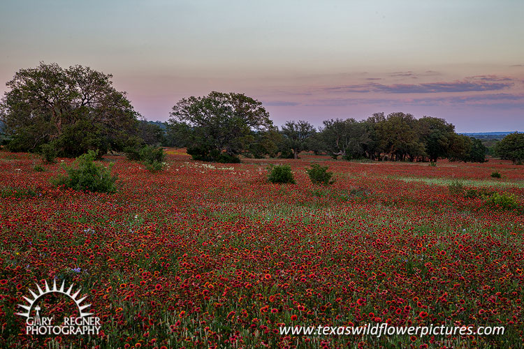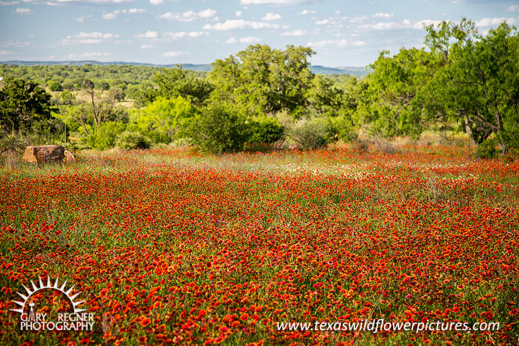 - > IH 35 north of Georgetown in Williamson county - Large fields can be seen from the highway that are completely red from firewheels. Rating: 4-5