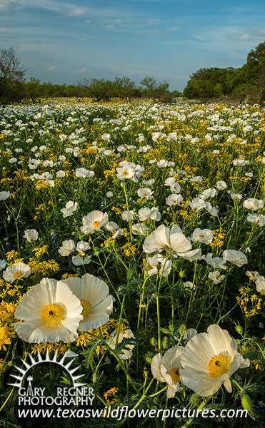 - > TX 71 W to Pontotoc - nice coverage along road, Rating: 3-4 to Valley Spring, Rating: 2-3 beyond that. Some fields of groundsel and prickly poppies, but bluebonnets are light and spotty when they extend into fields.